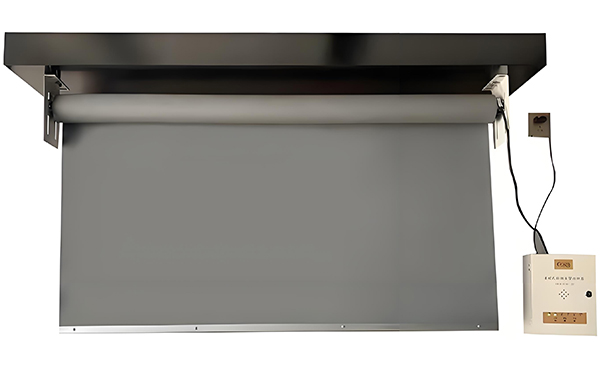 连接电源线和控制线,将府谷挡烟垂壁安装在支架上,并用螺丝固定。
